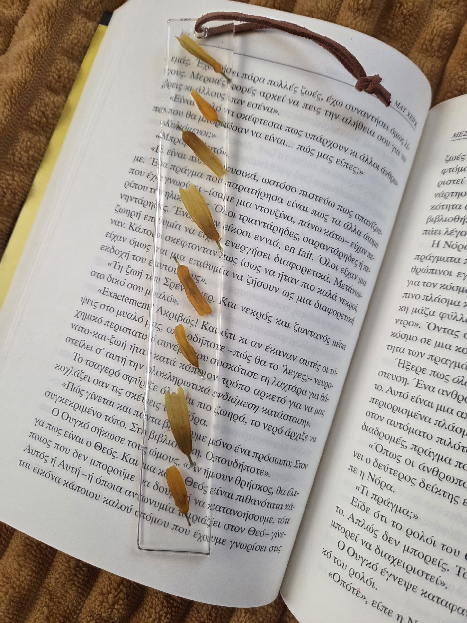 Limited edition χειροποιήτος σελιδοδείκτης φτιαγμένος από υγρό γυαλί με αληθινά πέταλα μαργαρίτας.