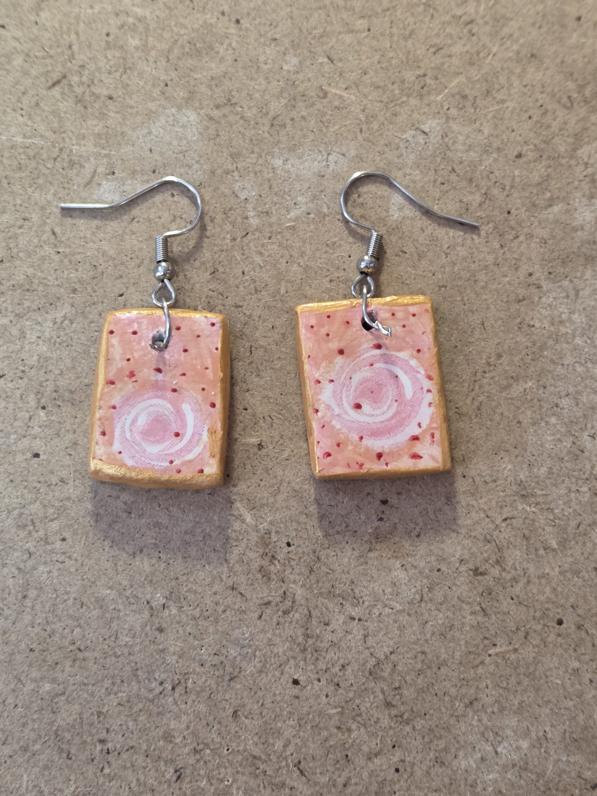 Handmade air clay earrings with stainless steel clasps.